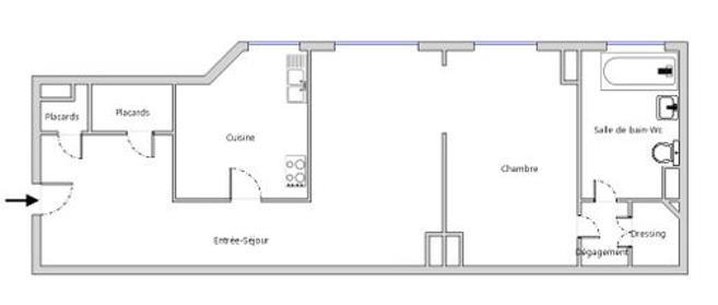 Il se compose d'une entrée, d'une cuisine pouvant s'ouvrir sur le séjour, une chambre et une salle de bains avec toilette.