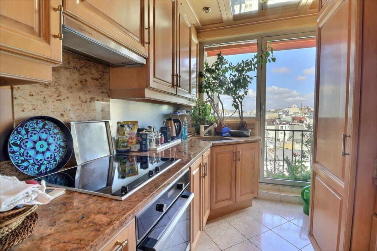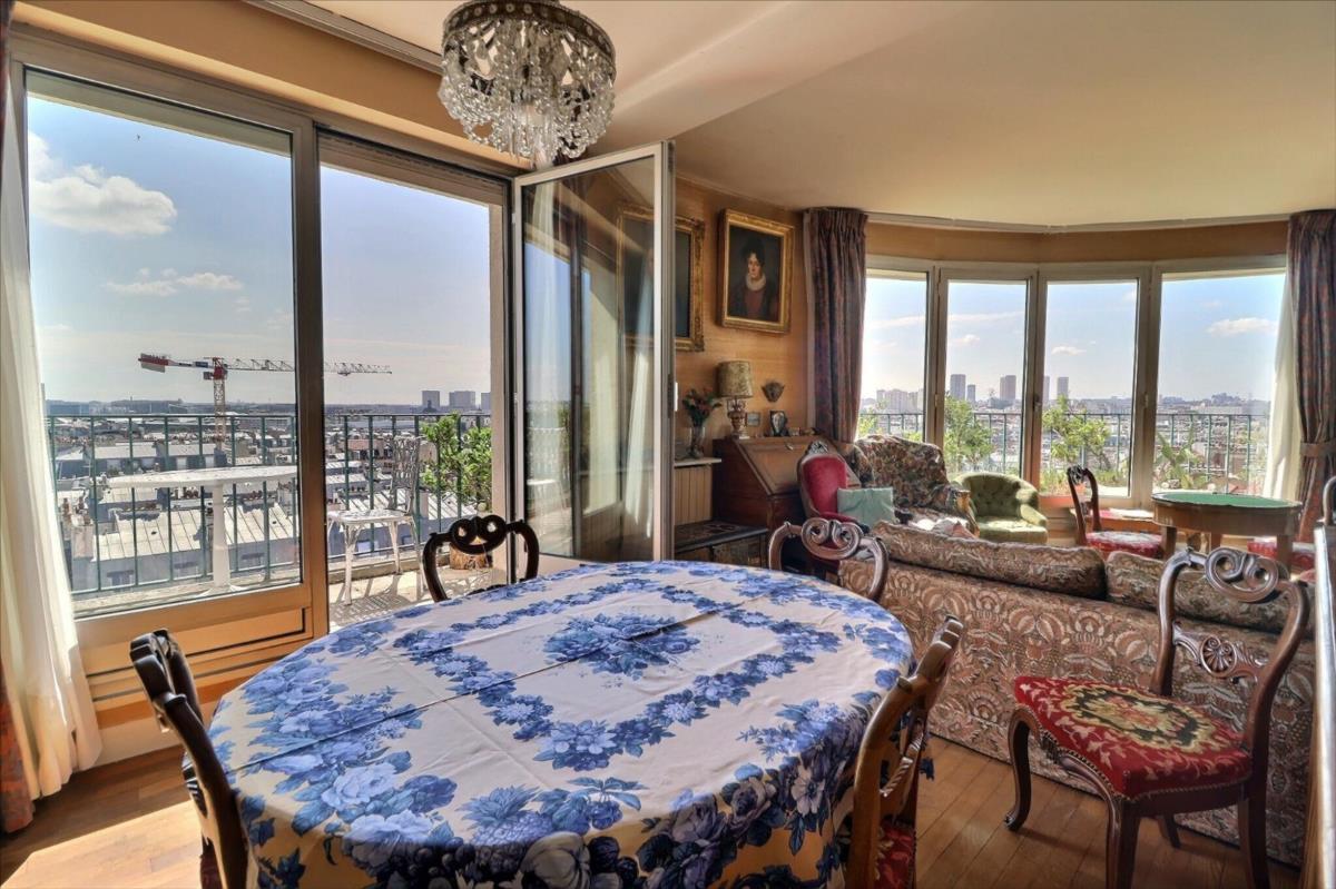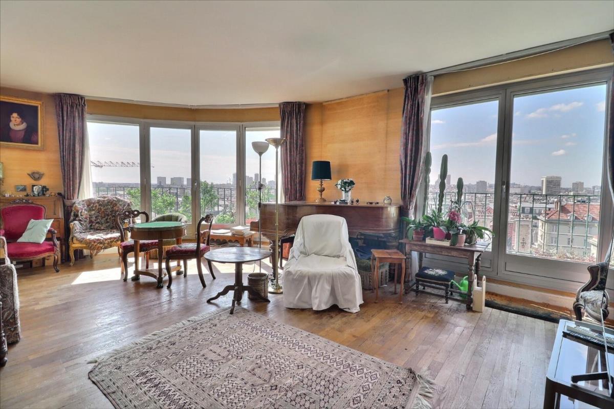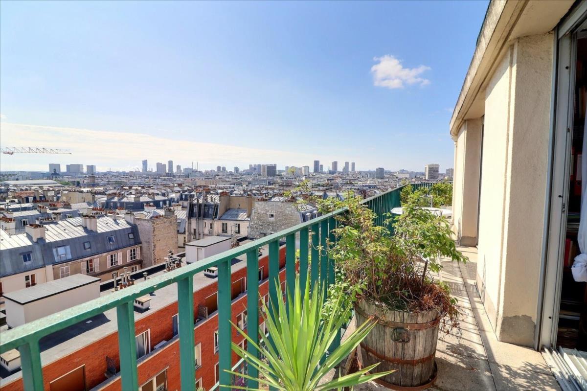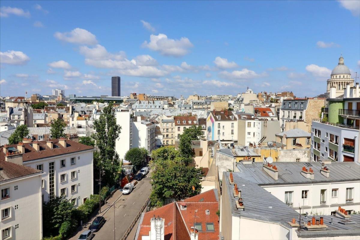Rue Lacepède, au cœur du 5ème arrondissement, entre la place Monge et la rue Mouffetard, se trouve cet appartement 4 pièces d'une surface de 110,33m2 au 7ème étage en angle avec un balcon filant de 35m2, offrant une vue panoramique sur Paris et ses monuments (Val de Grace, Panthéon, Tour Eiffel)
